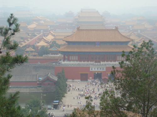 Derrière la cité interdite, la colline de charbon, Jingsan Gongyan, (entrée 0,20 €) nous offre une superbe vue sur la cité