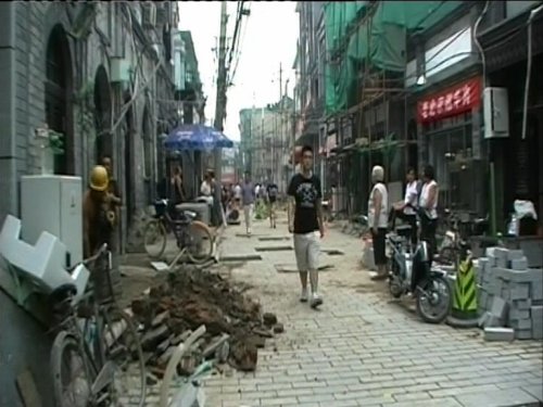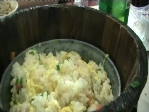 Dans la rue qui vient d'être refaite, un poulet pané sauce aigre douce avec du riz ( 3 €)