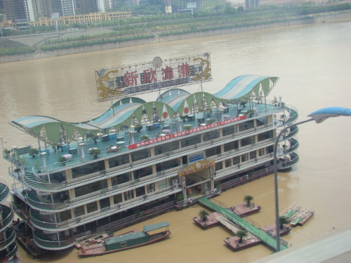 restaurant : en haut d'un immeuble, au 23° étage, qui tourne !!!! Jiuchongtian Xuanzhuan Fengweiting restaurant de l'hôtel Yudu (4 € le repas)