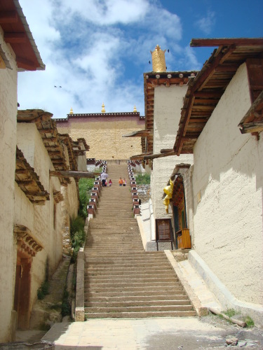 2 - le monastère Songzanlin : à l'extérieur de la ville ; il faut prendre un bus de ville qui s'arrête à un immense bâtiment abritant un guichet proposant une entrée à 9 €. Il faut ensuite prendre un autre bus qui conduit les clients à l'entrée du temple. Nous avons refusé ce prix exhorbitant et sommes partis à pied (3/4 d'heure) et visitons finalement sans payer
