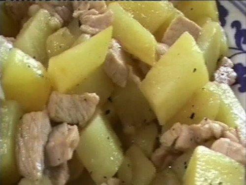 restaurant : A Liugong, au bout de notre promenade à vélo, un petit restau tout au bord de la rivière et une restauratrice qui rêve d'apprendre le français. Au menu (1,60 €) porc aux pommes de terre.