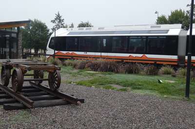 Pourquoi ces photos du train ? Depuis 4 jours, nous voyons cette voie ferrée toute neuve, des gares pimpantes mais jamais le moindre train. Nous en avons conclu qu'il n'existait pas ! Erreur ! On l'a vu ce matin