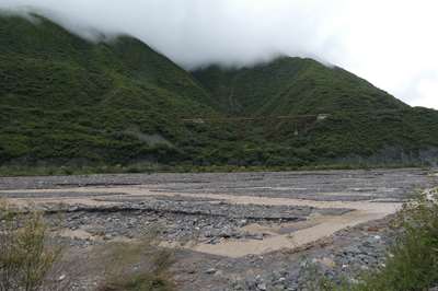 Le début n'est pas très encourageant : nuages très bas, route défoncée, envahie par l'eau .....