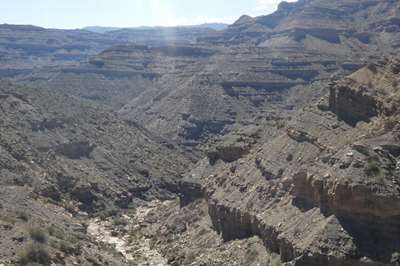 Ces dépôts blancs sur le sol sont de la bentonite : une argile blanche très fine, qui a la propriété de coller quand elle mouillée. Très recherchée dans la région