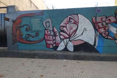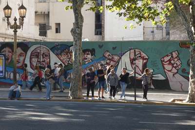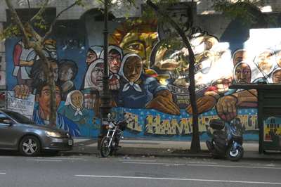 Derrière cet alignement, un "mural" en l'honneur des mères (puis grands-mères) de la Place de Mai
