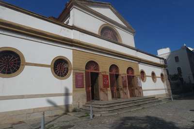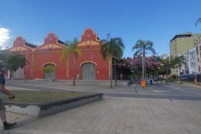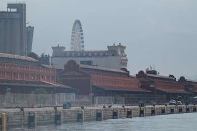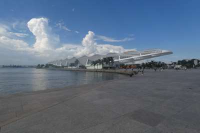 La place, avec ce grand bâtiment en forme de navire (un musée)
