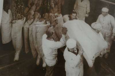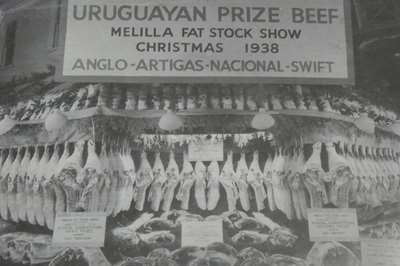Une magnifique frise retrace le parcours de la vache dans l'entreprise : son arrivée, son abattage, son découpage et l'utilisation des différentes parties pour la fabrication des produits : bouillon, le corned beef ..