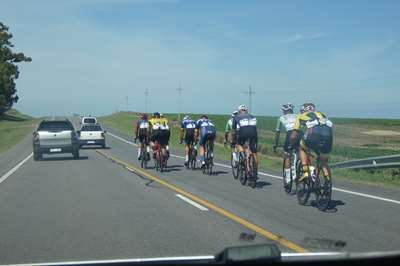 Mais aujourd'hui, événement : une course cycliste nous accompagne, ou plutôt l'inverse : impossible de doubler, alors nous attendons ...