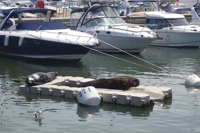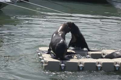 La surprise : des otaries en pleine sieste... C'est effectivement l'heure sauf que la sieste peut être mouvementée : voir cette vidéo en cliquant ICI