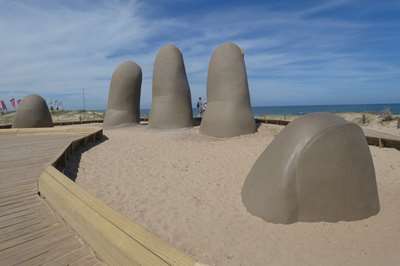 avec le symbole de Punta del Este : la mano en la arena, oeuvre d'un artiste chilien : Irarrazabal (si ce n'est pas basque ça...)