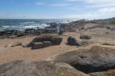 Le pique-nique au bout du bout de la péninsule. A droite, l'Océan Atlantique, à gauche la fin du Rio de la Plata. Cherche bien la frontière ....
