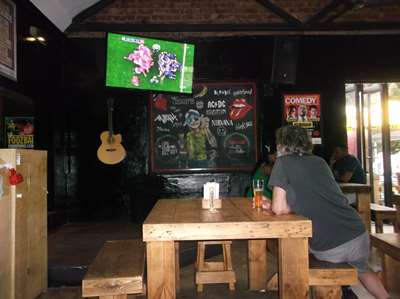 A côté de l'appartement, nous entrons dans un bar boire une bière, et que vois-je à la télé : le match France-Galles qui débute !!!!!!!!!!!!!!!!!