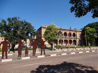 A 10 mn de notre hébergement, l'endroit où Nelson Mandela s'est fait arrêter après un meeting à Pietermaritzburg. Il en a pris pour 27 ans. Un monument étonnant a été érigé à cet endroit