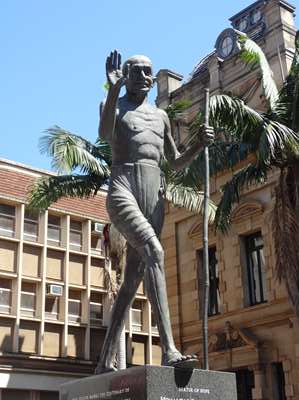 Gandhi, héros local pour avoir refusé de quitter un wagon reservé aux blancs (emprisonné)