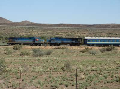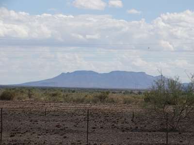 Nous avons 600 KM à parcourir. Nous mettrons 6 heures : routes toutes droites, peu de circulation. Avec des paysages comme on imagine l'ouest américain (qu'on ira voir un jour). En fait, nous avons traversé le désert du Kalahari