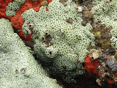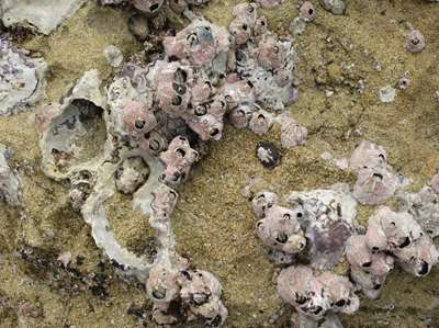 A marée basse, dans les anfractuosités des rochers :