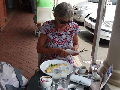 Mamie la gourmande a trouvé une crêperie pour midi (crêpe au boeuf haché-bolognaise et une au foie de poulet)