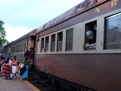 Le départ laborieux (premier arrêt de 10 mn au bout de 30 secondes), les arrêts interminables pendant la nuit, en pleine brousse, sans lumière, la lenteur toute africaine du train font naître quelques angoisses : nous savons que nous avons 7 heures de délai pour faire la corrspondance avec le bus, nous ne savons pas si ce sera suffisant .....
