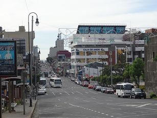 Le vieux quartier, celui des planteurs de café ; à droite, l'Alliance française avec sur la façade un "Je suis Charlie"