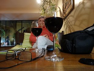 A l'hôtel, le soir, en attendant les spaghettis carbonara, un petit vin chilien