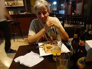 Pas grand chose d'ouvert autour de l'auberge ; nous nous rabattons sur un restaurant péruvien qui fait de la soupe à la poule, avec le morceau de poule (nous avons une pensée émue pour les nôtres, en vacances à Louadet)