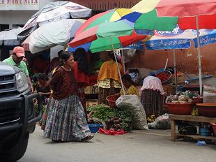 Un petit marché qui vaut pour son authenticité : les Indigènes en tenue traditionnelle, pas encore touchés par le tourisme. Pas un seul blanc à l'horizon
