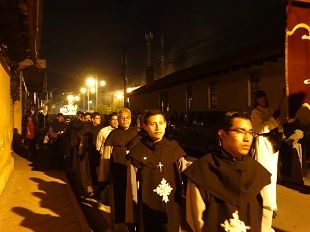 Dans l'église, pour la semaine sainte, reconstitution de la scène originelle avec les gardes romains
