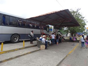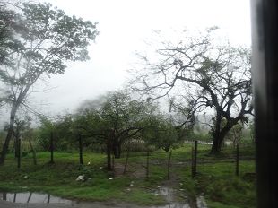 Il pleut sur Quirigua ; notre premier bus, un peu pourri nous amène à El Rancho, en plus de 3 heures