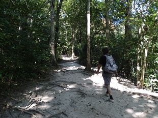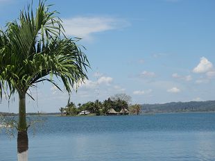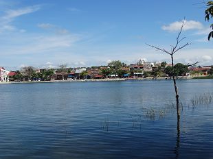 à pied, nous allons à Flores, une presqu'île entourée du lac Peten