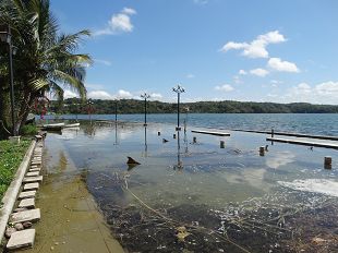 L'eau du lac a énormément monté : d'après un habitant, c'est dû aux fortes pluies d'il y a un mois