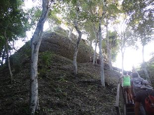 Après-midi à Yaxha, des ruines à une heure et demie de Santa Elena ; difficile d'y aller, nous avons donc utilisé les services d'une agence.... C'est la 2° fois qu'au Guatemala nous utilisons les services d'une agence ....et c'est la 2° fois qu'ils OUBLIENT de venir nous chercher à l'hôtel... On ne rit pas !!!! C'est donc en taxi, à fond la caisse (fesses bien serrées) que nous rejoignons Yaxha en écoutant le match Barcelone-Madrid