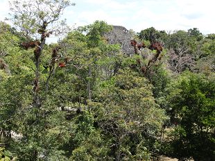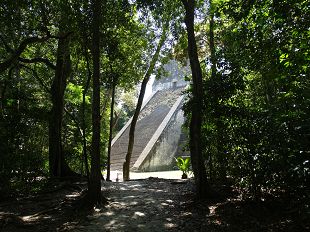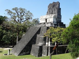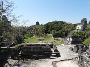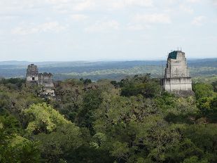 Tikal s'étend sur 16 m², au milieu d'une magnifique forêt (parfois jungle) d'où se détachent les ceibas