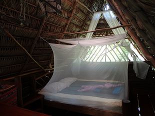 A l'étage, notre chambre et la moustiquaire