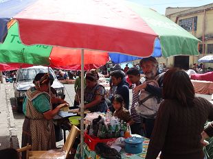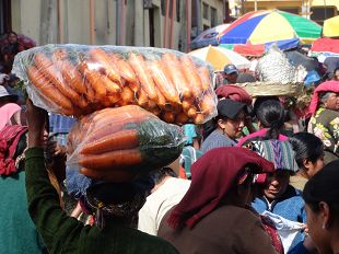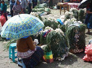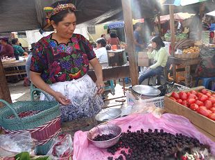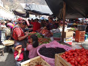 Une visite à un petit village à côté de Xela où a lieu le mercredi un marché (fruits et légumes uniquement : c'est une région de maraîchers)