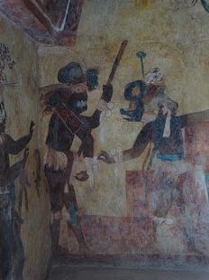 L'intérêt réside dans ce petit bâtiment à trois entrées où se trouvent des peintures extraordinaires