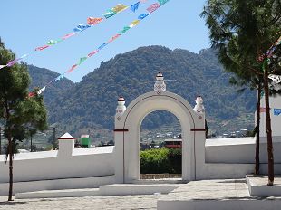 la particularité de ces deux villages réside dans leur rapport à la religion ; en fait, les indigènes, avec l'accord de l'église, ont adapté leur religion chrétienne aux rites mayas. Ce qui donne des scènes cocasses ; mais interdit de photographier à l'intérieur sous peine de prison ; comme ils n'ont pas l'air de rigoler ici, nous n'avons pas fait les malins. Ici, pas de bancs, mais des sépulcres et un amoncellement de fleurs (de toute beauté)