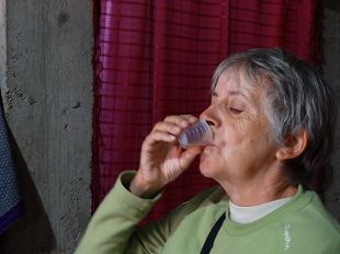 On nous a amenés ensuite goûter le poesh (de l'eau de vie) , voir des femmes qui tissent et cuisinent