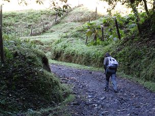 Le sentier, 6 km, prévus pour 5 heures ; mais nous n'irons pas au bout, trop dangereux car glissant