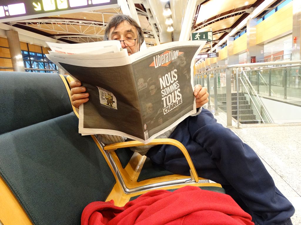 6 h 30 : arrivée à Madrid et attente jusqu'à 11 h ; on a enfin trouvé un Libé de la veille !!!!