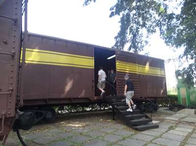 A l'opposé de la ville, à trois quarts d'heure sous une chaleur étouffante, se trouve le musée del tren blindado (voir l'historique hier). Aujourd'hui, les wagons sont ouverts (et ocre)