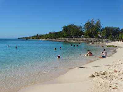 Très belle plage, mais on se croirait sur les côtes landaises au mois d'août, musique à fond en plus ; à éviter