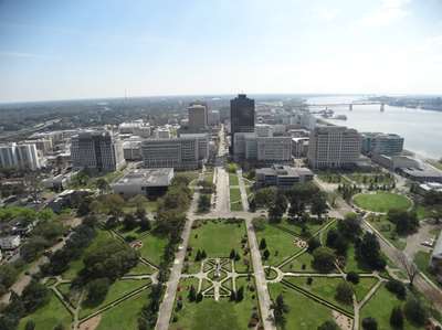 Du 27° étage (oui, oui, Nayélie), vue sur la ville, la raffinerie et le Mississipi