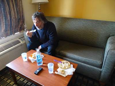 C'est la première fois depuis le début du voyage que nous mangeons chez nous le midi
