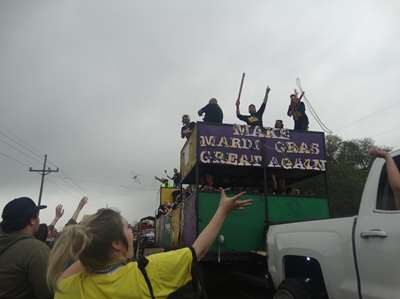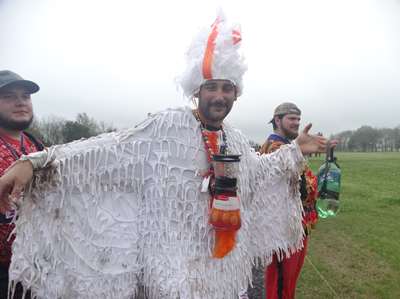 ça discute avec des gens venus d'Orlando, puis des jeunes arrivent, déguisés