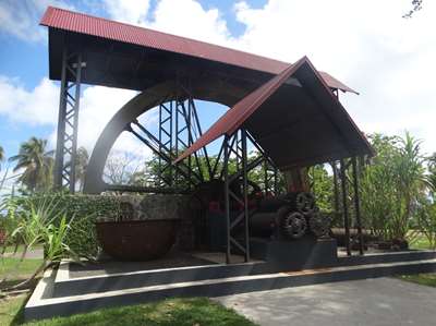 Une machine pour couper et ramasser la canne. Quand c'est inaccessible, ce sont les Haïiens qui viennent le faire ....