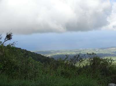 Sur les pentes de la Montagne Pelée un lieu d'où l'on voit les deux côtés de l'île