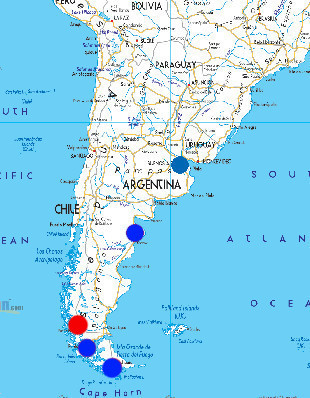 Finalement, 21 heures de bus pour un petit saut sur la carte. Nous ne sommes pas très loin de Puerto Natales...