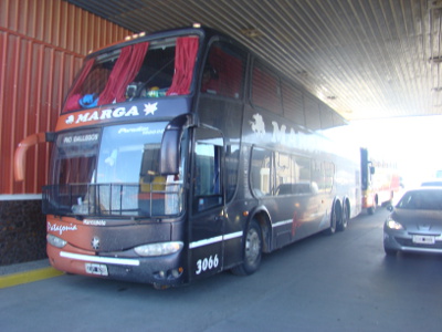En début d'après midi, gare routière et vers 16 heures, en route vers Esquel : on se prépare à 24 heures de bus. Mais le bus est confortable : des sièges "camas" : trois par rangées au lieu de quatre et ils se baissent davantage. On repasse pour la troisième fois en 12 jours par Rio Gallegos, véritable noeud routier !