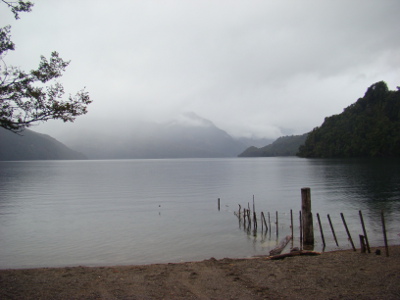 Nous nous lançons quand même vers le sud, vers ce fameux "parque de los Alerces". Ne voyons-nous pas pointer en route quelques rayons de soleil .... qui nous rendent optimistes ? Mais notre joie disparaît assez vite car nous renouons avec la pluie et les nuages bas.