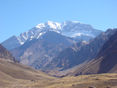 Ensuite, un détour vers le puente del Inca (curiosité géologique) et le cimetière des andinistes (les morts dans l'Aconcagua). Et nous avons aperçu le géant d'Amérique, l'Aconcagua (6962 m, le sommet le plus haut d'Amérique). Nous devrions, demain, l'approcher un peu plus.
